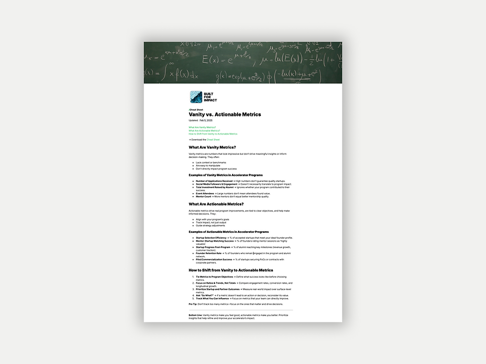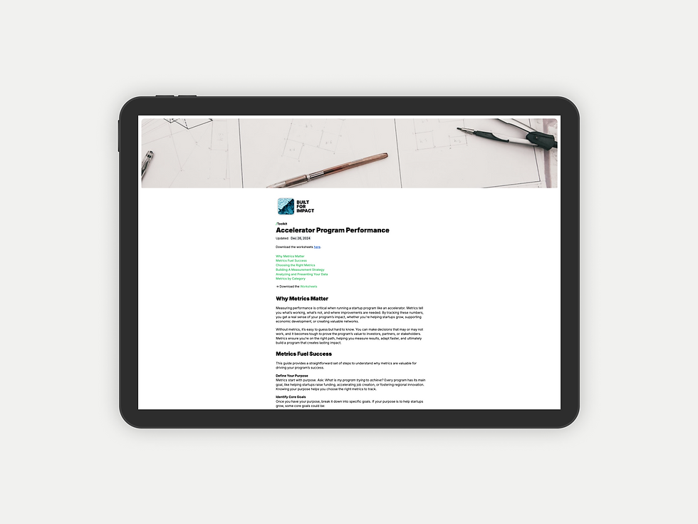 Access ready-to-use, professionally designed systems and templates to streamline your accelerator operations, ensuring consistency and best practices from day one.